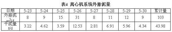 2009年4月24日,新建臥螺離心機(jī)項(xiàng)目投入試運(yùn)行,試運(yùn)行工藝流程大致同圖2,離心機(jī)上清濾液不經(jīng)過溢流水箱和溢流水泵到16米沉降槽,直接經(jīng)過排水管排入下水道。